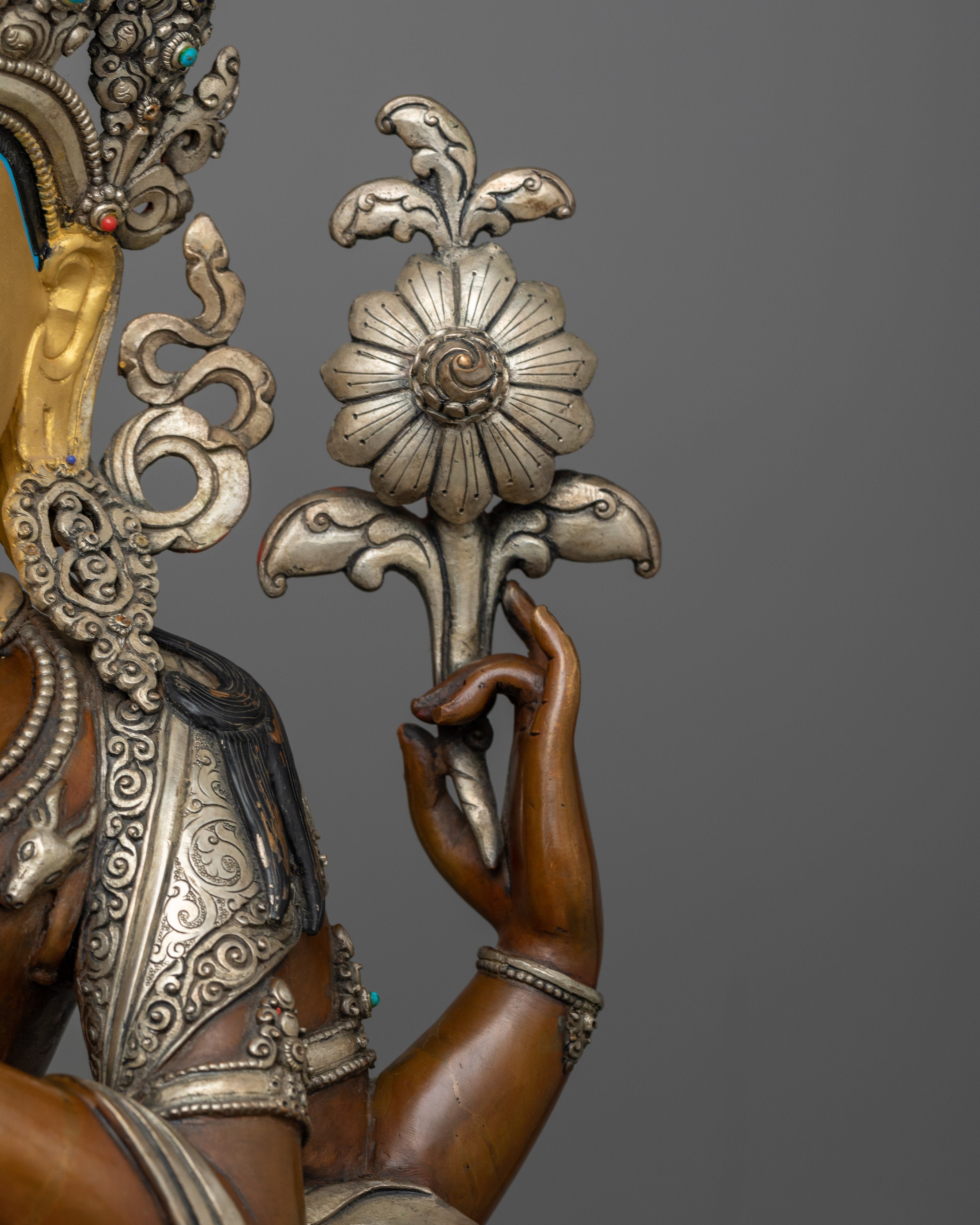 Silver-Plated Chenrezig Statue | Illuminate Your Path to Enlightenment