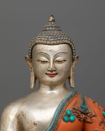 Handcrafted Shakyamuni Buddha in Silver-Plated Copper – Embodiment of Wisdom and Peace