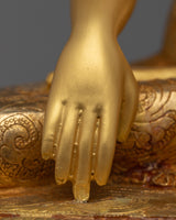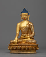 Do you want to add a symbol of peace and enlightenment to your home? Our Gautama Buddha 中文 statue could be the ideal complement. This statue stands 9 inches tall and has a 6.2-inch base. It weighs 1.48 kg. The copper body is expertly manufactured in Nepal and delicately finished with 24K gold plating and beautiful acrylic paints.