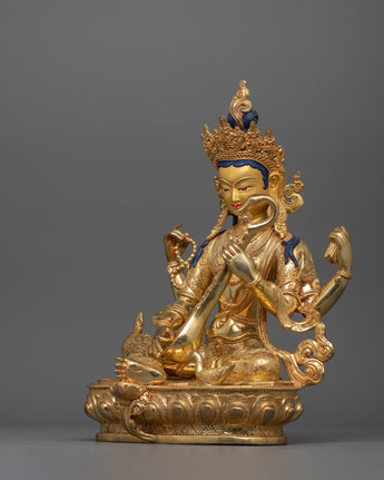24K Gold Gilded The Hindu Goddess of Wisdom Saraswati Statue for Shrine
