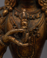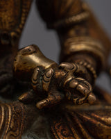 Our magnificent Vajrasattva 100 Syllable Mantra statue will illuminate your spiritual journey. Vajrasattva, the purification deity, is thought to purge the mind of impurities, clearing the way for enlightenment and inner calm. This statue, crafted from durable copper and blessed with an antique finish, captures the essence of Vajrasattva's purity with its oxidized accents.