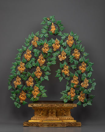 With our amazing 21 Tara Goddess Sculpture, a wonderful picture of spiritual progress and enlightened compassion, enter a world of divine peace. The central magnificence of Green Tara is encircled by twenty Tara goddesses, each seated in the exquisite silhouette of leaves on fragile stems, expressing Tara's loving nature in her many incarnations.