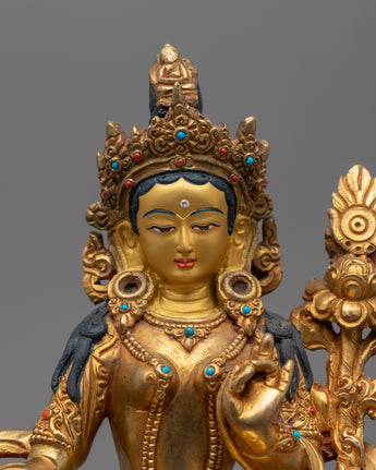 With the 21 Taras Figurine Set, embrace the divine feminine energies of protection and compassion. These beautiful sculptures, which were created with great care and accuracy, are the epitome of compassion and knowledge. With a height of 8.9 inches and a base diameter of 7.1 inches, every figurine exudes a graceful and empowered aura. These statues, with their elaborate acrylic paints and 24K gold gilding on copper bodies, evoke the holy essence of the 21 Taras.