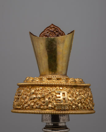 The Bhumba is a ceremonial item that contains holy water blessed by the Guru. The holy water is thought to eliminate negativity and purify people and objects. Bhumba is used for complicated purification rituals to easily purify and defend from harmful forces.
