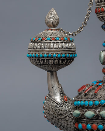 Big Tea Pot | Gemstones Embedded Buddhist Pot | Religious Home Decor