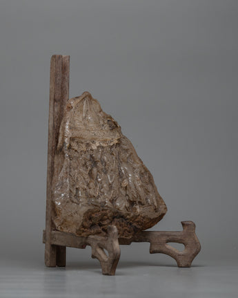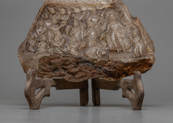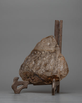 With our Himalayan Crystal Stone Buddha Lumbini Journey Relief Art, you can take a mystical journey back in time. This piece, carved from the enigmatic depths of rough Himalayan crystal, depicts Gautam Buddha's auspicious arrival at Lumbini. Each intricately carved detail whispers ancient tales and spiritual lore, transporting you to a realm where divinity meets earthly presence, standing at 25cm in height and 18cm in width.