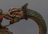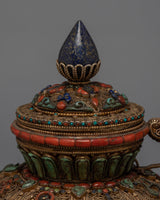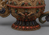 Buddhist Handcrafted Tea Pot for Home Decor | Gemstones Inlaid Tibetan Pot Art