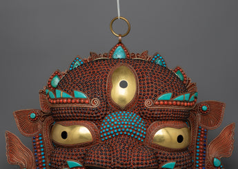 Look at the magnificent Copper Nepali Wall Hanging, a divine artwork that perfectly combines spirituality and craftsmanship. This magnificent mask, made of copper and embellished with lavish 24k gold plating, is proof of the extent of human creativity.