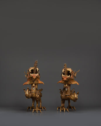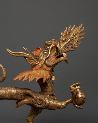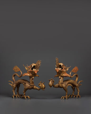 These copper and expertly gold-plated statues display a brilliant blend of materials, emphasizing the renowned Chinese dragon's symbolic power. Each piece weighs around 10.59 kg, for a total weight of 21.13 kg, making them substantial additions to your area. The careful design highlights the dragons' mythological spirit, conveying their tremendous energy and dominating presence. Placing these statues together or individually will create a focal point representing guardianship and cultural legacy.