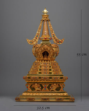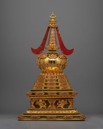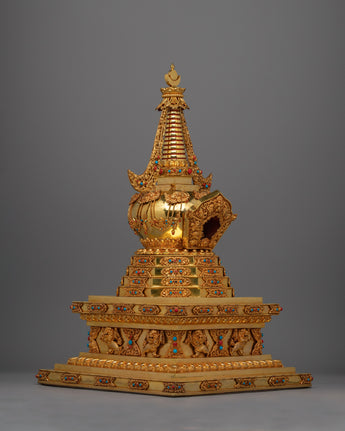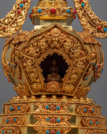 Traditional Buddhist Gold-Plated Stupa | Sacred Stupa for Spiritual Devotion and Elegant Home Decor