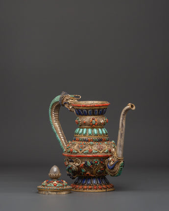 Himalayan Tea Pot with Semi-Precious Stones | Buddhist Ceremonial Spiritual Decor