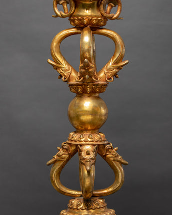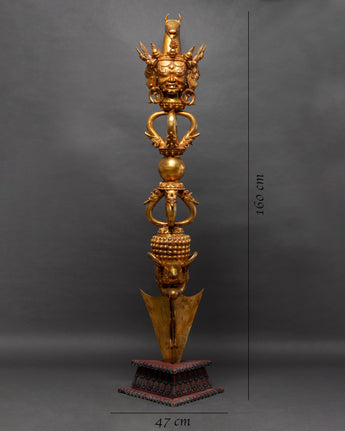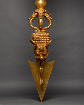 Our Phurba is a beautifully decorated ritual dragger hand-carved and exquisite, crafted of complete copper and plated in pure gold. This Phurba will be a meaningful present for your companions, friends, family, and yourself.