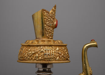 A crucial ceremonial object, the Bhumba or Ritual Vase is used to keep holy water that has been blessed by the Guru. Holy water is splashed or spilled to cleanse individuals, locations, or things to banish negativity and fight off evil spirits.