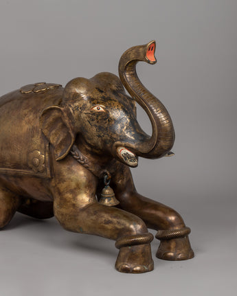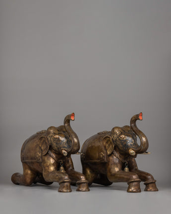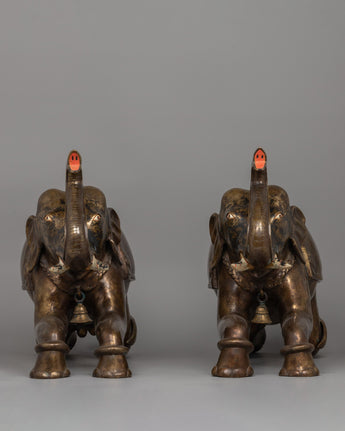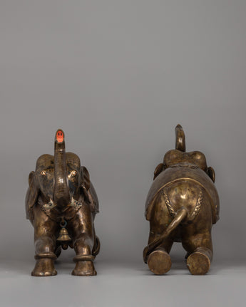 The meticulous workmanship reflects elephants' genuine features, from their rough skin to their expressive eyes and trunks lifted in a gesture of optimism and good fortune. The addition of little decorative bells gives them a more traditional appearance. These sculptures are more than simply decorative pieces; they are timeless works of art that symbolize cultural history and a love for nature.