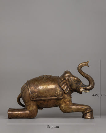 This exquisite pair of handmade elephant sculptures reflects the grace and strength of these magnificent beasts. Each piece of oxidized bronze and metal exemplifies excellent craftsmanship and attention to detail. Standing at an astounding 40.5 cm in height and 61.5 cm in breadth, these sculptures ooze grandeur, making them ideal statement pieces for indoor and outdoor settings. The sculptures, weighing 39.09 kg, are strong and durable.