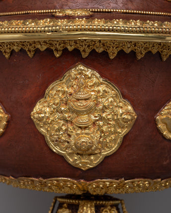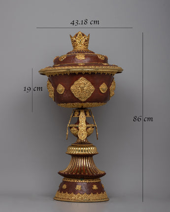 This 26 kg set of butter lamps is a striking example of artistic and sophisticated design as well as a symbol of spiritual devotion. With our Butter Lamp Set, a timeless item that perfectly captures the spirit of Tibetan Buddhist tradition, you can embrace the glorious glow of enlightenment and create an atmosphere of peace and transcendence.