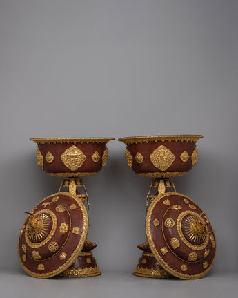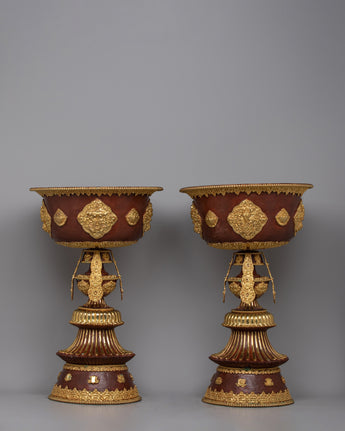 Our Butter Lamp Set, which is expertly crafted by hand, is a tribute to the rich history and respect for Tibetan artistry. The elaborate design and fine details capture the love and spiritual meaning infused into every part of its making. These lamps lend a sense of grandeur and holiness to any setting, whether they are utilized for ritualistic purposes or as a decorative element.