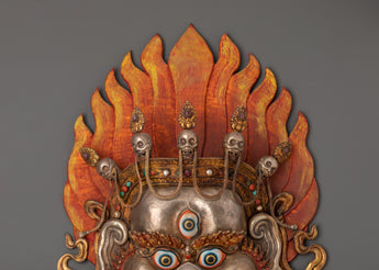 This Tibetan wall hanging mask also has exquisite embellishments such as huge ears, elegant earrings, and a dramatic five-skull crown, representing the transcendence of negative emotions and the mastery of the five poisons in Buddhism. The distinctive design combines scary expression with sacred meaning, making it an effective item for Buddhist altar decor, spiritual wall art, or a striking statement in any meditation or yoga area. Whether you're a collector of Tibetan antiquities or simply looking for a significant and artistically magnificent Buddhist mask, this piece adds protection, transformation, and spiritual depth to your house. It's more than merely a decorative item; it's a spiritual protector and conversation piece with a rich history and energy.