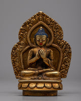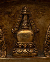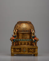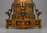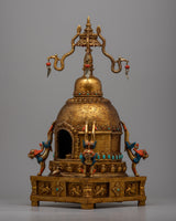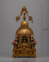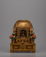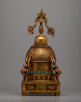 This finely detailed stupa is a masterful representation of Buddhist religious art, embodying spiritual symbolism and exquisite craftsmanship. Constructed on a Copper body and gold-plated, this stupa is a visual marvel and a sacred object of reverence.