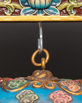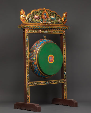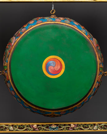 This Tibetan Drum, weighing 20.87 kg, is a remarkable artifact that can serve as both a spiritual tool and a decorative item in your home or temple. The craftsmanship and symbolism of the Himalayan drum are unparalleled, making it an ideal choice for collectors, spiritual seekers, and anyone wishing to personalize their environment with meaningful decor. Add this unique Tibetan spiritual drum to your collection and feel the strength of ancient Tibetan rituals right at home.