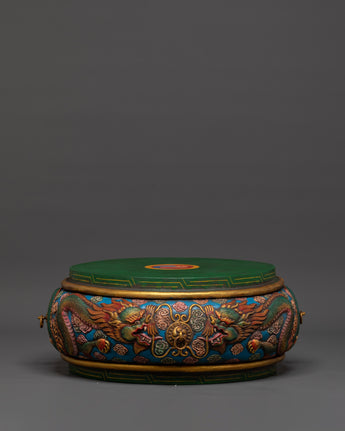 Traditional Tibetan Drum | Handmade Himalayan Drum with Dragon Motif