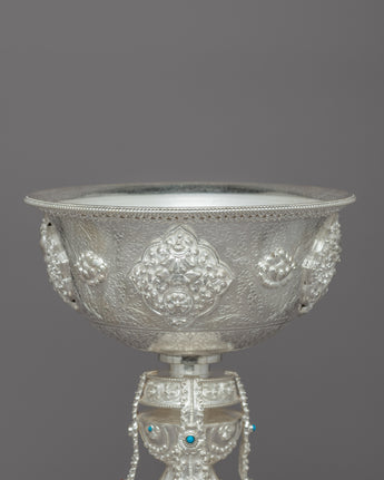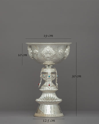 Exquisite Handcrafted Silver Butter Lamp Set for Ritual Offerings