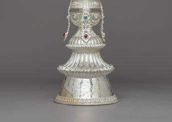 Our traditional handcrafted butter lamp set, measuring 30 cm tall with a 12.5 cm base, is an essential component of Tibetan Buddhist rites. Each lamp is made of outstanding silver and has a diameter of 19 cm and an inner depth of 10 cm, allowing for excellent illumination during meditation and pujas. The overall weight of (221 Tola) 2.586 kg, (1.294 kg per lamp) demonstrates the precious item's durability and authenticity. In Buddhism, lighting butter lamps is a symbolic act of removing darkness and ignorance, making these lights an important part of spiritual activities that connect people to enlightenment and wisdom.