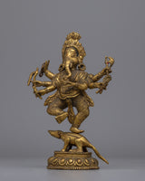 This sculpture, made of exquisite copper, has been aged for more than 25 years, adding to its antique appearance and cultural significance. The multi-armed illustration of Ganesha represents his omnipresence and capacity to handle multiple facets of life at the same time. This artwork, set on a lotus base, combines spiritual importance with creative ability. Its ageless beauty and spiritual intensity make it a valuable addition to any collection or devotional setting.