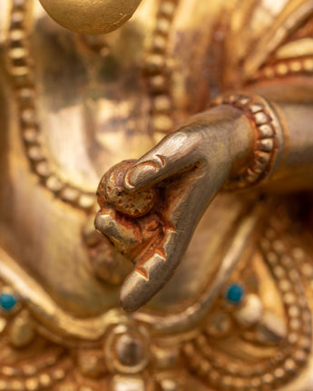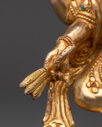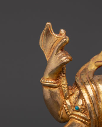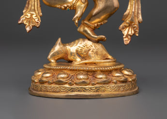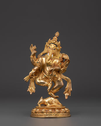This Exquisite Hindu Deity Ganesh Statue, painstakingly made from copper and finished with a bright gold-plated body, is a piece of art that will bring divine blessings and beauty home. This small yet eye-catching Ganesh idol, which is 19 cm in height and 11 cm in breadth, is intended to radiate happiness and spiritual presence in any area. Its 0.87 kg weight makes it the ideal size for altar areas, meditation nooks, and home temples. It embodies the spirit of traditional Indian workmanship and spiritual beauty.