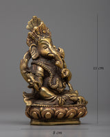 Presenting our Ganesh Copper Statue, an enduring representation of knowledge, wealth, and heavenly defense. This magnificent 11-cm-tall statue, which is carefully crafted on a copper body, exudes grace and spiritual significance.