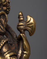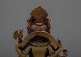 The statue's aesthetic appeal is enhanced and its spiritual energy is grounded by the warm glow of its copper body, which also lends a touch of rustic charm. Whether positioned on your desk, altar, or meditation area, it functions as a potent reminder of Ganesh's protection and blessings.