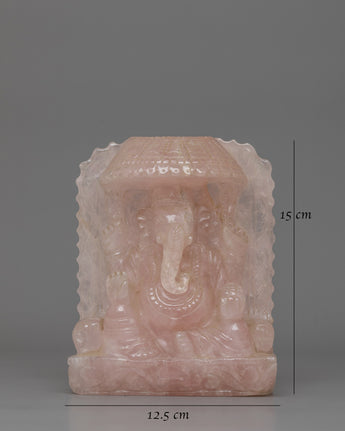 Ganesh Statue in Rose Quartz | Remover of Obstacles, Love & Prosperity Symbol | Handmade Pink Crystal Ganesha