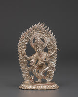 As the embodiment of knowledge, Ganesha is traditionally worshipped as the god of intellect and learning. The pure silver Ganesha statue beautifully embodies these qualities, making it an ideal piece for anyone seeking guidance, wisdom, or a fresh start in life. The flames surrounding the statue signify divine energy and enlightenment, enhancing the statue's peaceful yet powerful energy in any space.