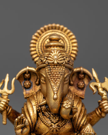 Lord Ganesh with Halo Statue | Four-Armed Ganesh Lord of Beginnings Idol