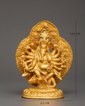 Gold-Plated Ganesh Statue | 12.5cm Copper Hindu Deity Idol