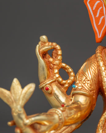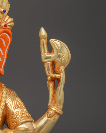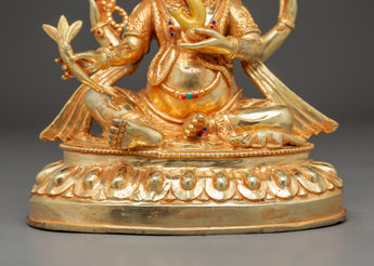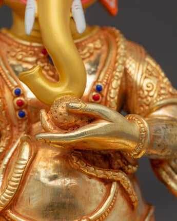 Whether used for prayer, meditation, or simply as a lovely piece of spiritual decor, this gold-plated Ganesha sculpture brings prosperity and incredible energy into your life. The use of copper, gold plating, and sacred stones brings beauty and meaning to your sacred area. Perfect as a gift or personal altar piece, it holds high spiritual value and serves as a continual reminder of Ganesha's heavenly benefits.