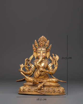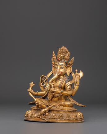 Handmade Vinayaka Ganesha Sculpture | Copper and Gold Plated Hindu Statue