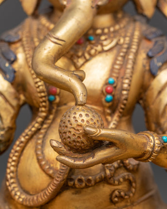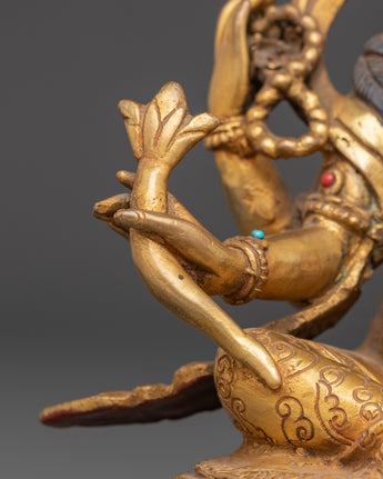 Measuring 21.5cm tall and 18.5cm wide, this sculpture is ideally sized for placement on your home altar, meditation shrine, or any sacred area. The copper construction offers a classic appearance, while the gold plating adds a touch that radiates divine energy. Whether you seek spiritual inspiration or wish to elevate the aesthetic of your space, this statue invites admiration and deep reverence.
