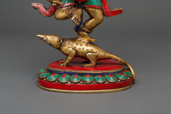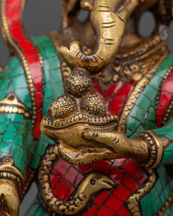 Lord Ganesh In Dance Posture Statue - Hindu Elephant Deity Sculpture with Turquoise & Coral