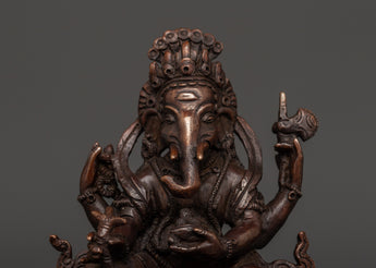 Lord Ganesh Oxidized Copper Hindu Deity Sculpture | Remover of Obstacles, Prosperity and Wisdom Symbol