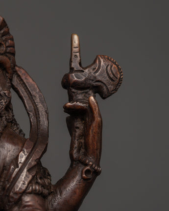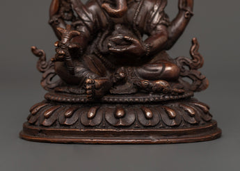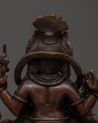 Crafted from Oxidized copper, this Hindu deity sculpture has an old appearance that adds to its spiritual and artistic worth. Its intricate design and ancient symbolism make it an ideal addition to your home temple or yoga studio, or a thoughtful gift for housewarming and religious occasions. Whether utilized for daily puja rituals or to enhance your spiritual home decor, this Lord Ganesha statue will provide a constant source of inspiration, power, and sacred presence in your space.