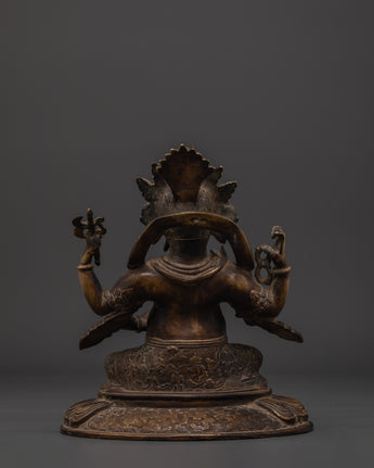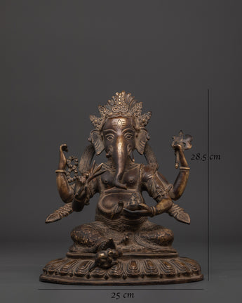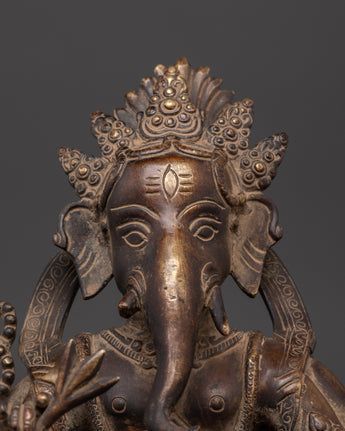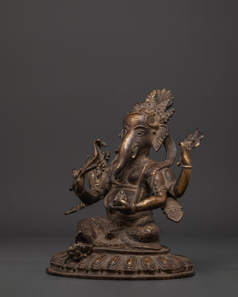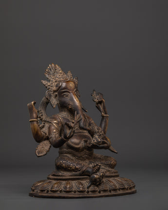 Sacred Ganesh Sculpture | Handcrafted Oxidized Brass Ganesha Statue