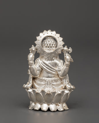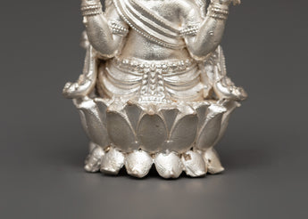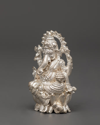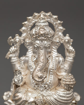 Sacred Silver Figurine of Hindu Deity Ganesha | Elephant God Spiritual Art