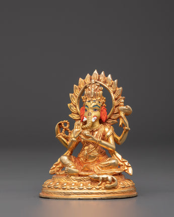 Perfect for placement in home temples, office desks, or meditation corners, the statue serves as a constant reminder of harmony, spiritual protection, and the power of positive transformation. Whether used during puja rituals or as a focal point for meditation, it enhances spiritual practices and aligns with Vastu principles to invite prosperity and balance. As a thoughtful gift for special occasions or a meaningful addition to your own sacred decor, this Ganesh idol symbolizes wealth, wisdom, and success, making it an essential piece for devotees seeking divine energy. Beyond its artistic beauty and intricate craftsmanship, the copper gold-plated statue carries deep spiritual significance, elevating the atmosphere of any room with its auspicious presence. Embrace the blessings of Shree Ganesh with this elegant statue, an embodiment of divine guidance and abundance that supports your journey toward fulfillment and prosperity.