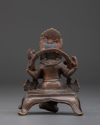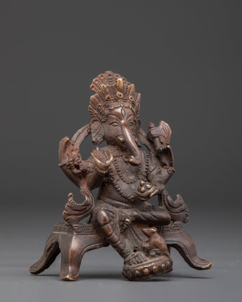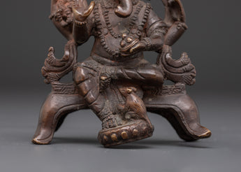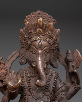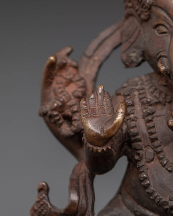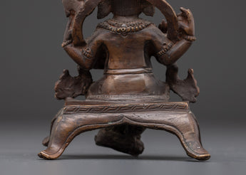This Ganesh figurine exemplifies exceptional craftsmanship, capturing the deity’s sacred presence through finely detailed carvings that emphasize his divine attributes such as the elephant head, graceful posture, and symbolic elements. Rooted in Hindu tradition, placing a Ganesh statue in your home or shrine is believed to invite prosperity, wisdom, and spiritual growth, creating a harmonious and uplifting environment. Crafted from oxidized copper, this Ganesha sculpture is not only a cherished devotional object but also a significant cultural artifact that inspires mindfulness, provides spiritual protection, and fosters inner strength and resilience. Its timeless design makes it an ideal addition to meditation spaces, personal altars, or sacred corners, offering a meaningful focal point for reflection and prayer.
