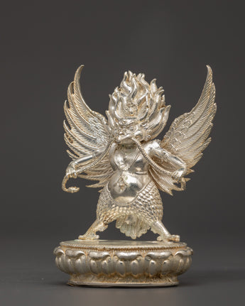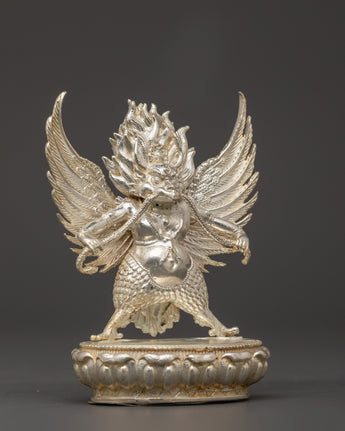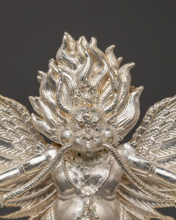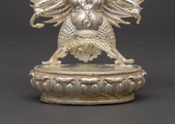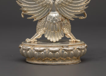 The Garuda statue is an ideal addition to your home altar or a striking centerpiece in any space, bringing divine energy, protection, and strength. Whether you're a collector of Hindu spiritual symbols, seeking a unique gift, or looking to adorn your home with meaningful spiritual decor, this handcrafted statue is a beautiful and powerful reminder of good triumphing over evil. The silver-plated Garuda is a lovely centerpiece that combines creative craftsmanship with spiritual symbolism, making it an ideal addition to your meditation room or home.