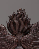 This Garuda statue is meticulously crafted to capture the essence of its mythological character. Every feature—from the curved beak to the outstretched wings—has been carefully shaped to convey strength, swiftness, and divine protection. The oxidized copper body enhances its spiritual aura, making it not only a decorative piece but also a potent symbol of courage and spiritual empowerment. Ideal for placement in homes, temples, or meditation spaces, this statue invites positive energy and protection into your environment, helping to overcome obstacles and deepen your spiritual practice.