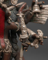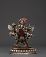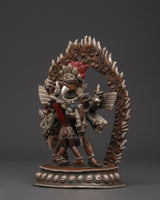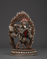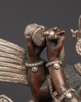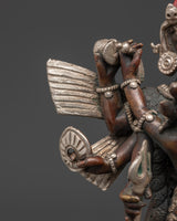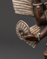 Garuda With Consort Figurine | Handcrafted Oxidized Copper & Silver Plated Statue