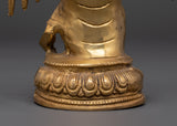 Every feature of the Garuda Protector—from the intricate feathers to the expressive face and posture—reflects traditional craftsmanship and devotion. In Buddhist symbolism, Garuda is seen as the great protector who dispels obstacles and guards against harmful influences. The warm brass finish enhances the divine essence of this guardian figure, making it an ideal centerpiece for altars, meditation rooms, or spiritual collections.
