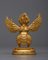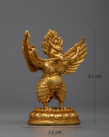 Introducing our Machine-Made Garuda Statue, precisely constructed from copper and embellished with exquisite 24k gold plating. Standing about 8.5cm tall, this statue represents the magnificent and strong features of Garuda, the mythical bird of Hindu and Buddhist mythology.